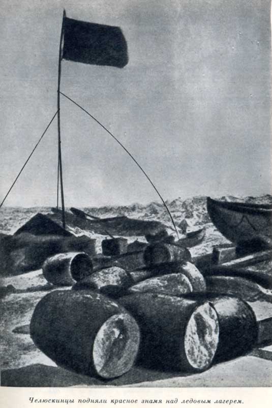 Челюскинцы подняли красное знамя над ледовым лагерем.