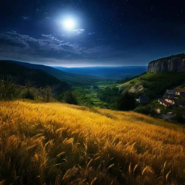 Простираются бескрайние поля с золотистыми колосьями пшеницы, пахнущие свежими травами и цветами. В ночи – запах особенно ярко освежает и заметен. Вдалеке виднеются горные вершины, увитые пышной зеленью лесов и кустарников.