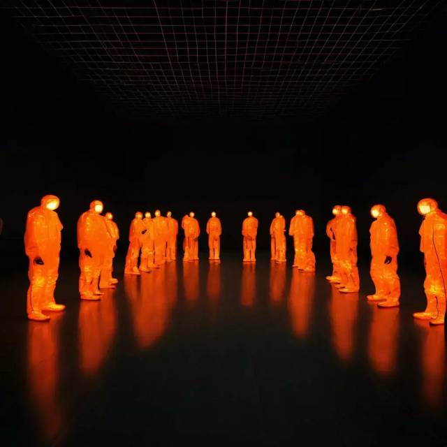 Лишь четко отрисовается группа людей в оранжевых комбинезонах светящихся изнутри.