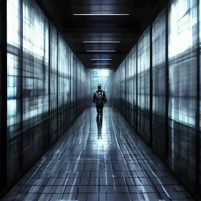 Дисторсия обволакивает и выгибает здание лаборатории. Искривляет каждый уголок. Стены изгибаются. Иллюзия неестественной выпуклой кривизны вызывает ощущения дезориентации и нереальности.