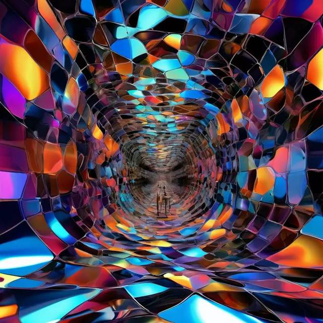 Комплексная оптическая дисторсия. Сочетающая в себе элементы выгнутости и вогнутости. Создает перед застывшими в разных позах и действиях участников Симуляции, а также болванчиков цифр – мозаичный образ искаженной реальности. Выпуклость, вогнутость, выпуклость, вогнутость… Переплетаясь в странных узорах и формах, окружение вызывает ощущение хаоса.