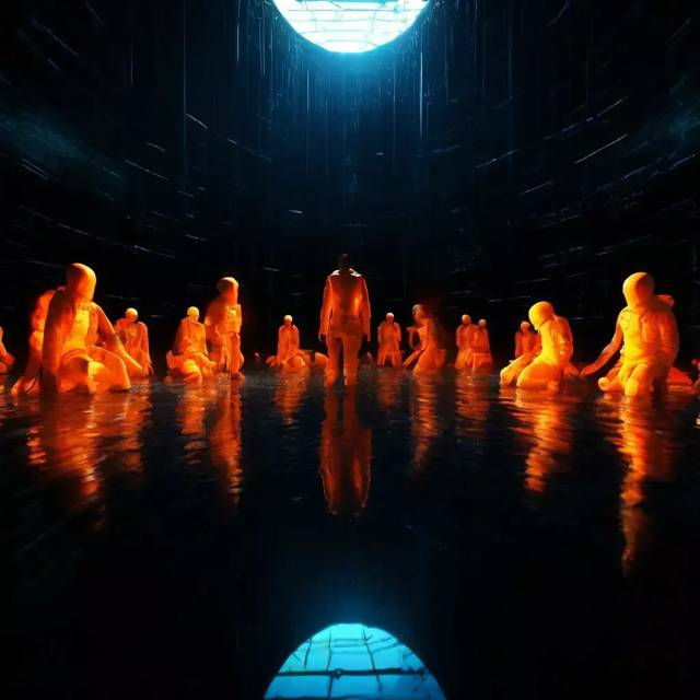 Оранжевые комбинезоны поблескивают в безумной черноте и тишине.