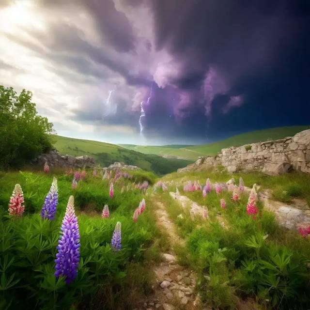Люпины… Поляна люпинов. Я не прав. Обман Симуляции. Неточность. Не сиреневые. Белые, желтые, розовые, красные, пурпурные и голубые… Цветов тут бесчисленно много.