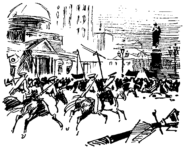 Колонна демонстрантов дрогнула и остановилась. У Страстной что-то происходило. Со стороны Никитских ворот мелкой рысью надвигалась жидкая цепочка конной полиции.