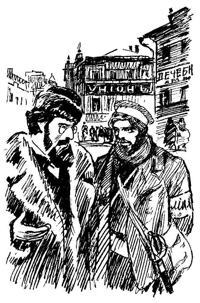 Штернберг остановился и обернулся. Рядом с ним стоял запыхавшийся студент с красной повязкой на рукаве. На повязке лиловым химическим карандашом было жирно написано: «Милиц.». На портупее через плечо у студента висела полицейская шашка, за поясом заткнут наган с остатками оранжевого шнура. Студент был знакомый, с физмата. Штернберг покопался в своей памяти и мгновенно вспомнил его фамилию – Урбанович.