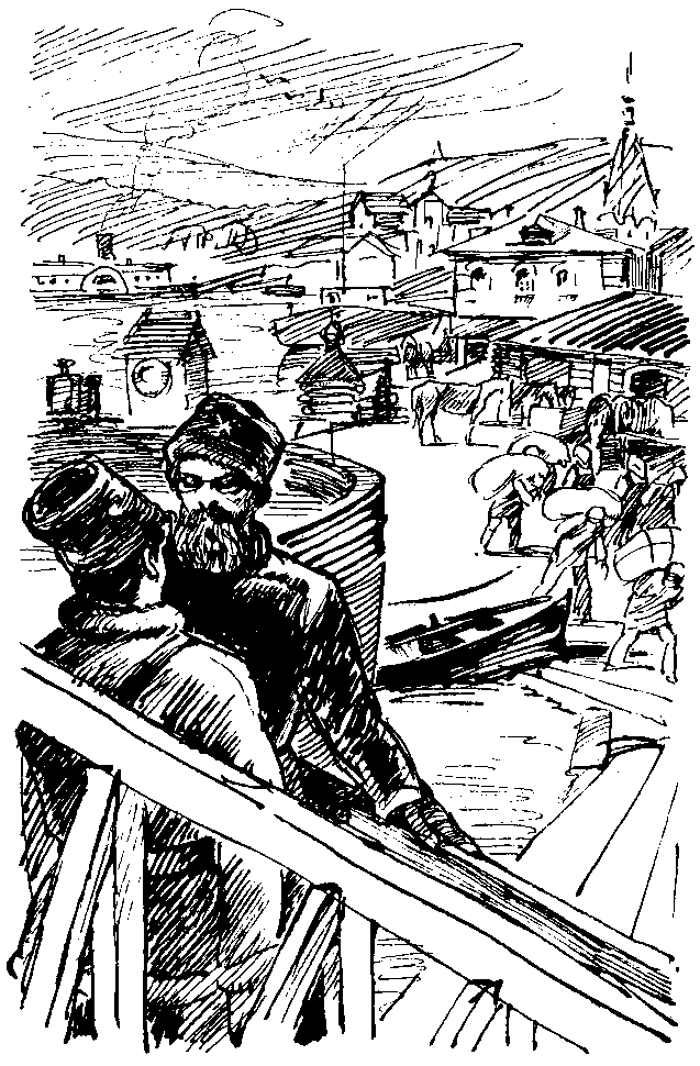 На тяжелой и неудобной пролетке Штернберг проехал через все село. Центральные улицы Вятских Полян ничем не отличались от улиц обычного российского уездного города: булыжные мостовые, деревянные тротуары, большое здание гимназии, кирпичные особняки купцов-богатеев, лавки, запертые железными дверьми с огромными висячими замками. На пристани Штернберга встретил знакомый и симпатичный ему человек, невысокий, кряжистый, с веселыми ироничными глазами под пенсне. Сергей Иванович Гусев дней десять назад приехал в армию из штаба Восточного фронта, где он был членом Реввоенсовета. Вид у Гусева был безнадежно штатский. Он с завистью посмотрел на высокую фигуру нового комиссара, на его как бы литую кожаную одежду и горестно сказал: