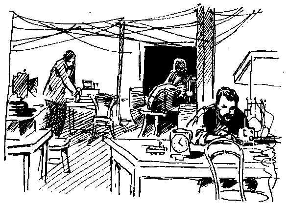 ...Он еще дальше идет на запад, чем Волхонка. Недалеко от Пречистенских ворот, сразу же после цветковского дома, где хозяин устроил картинную галерею, начинается узкий и грязный Нижне-Лесной переулок. Он идет параллельно Остоженке, но очень мало схож с этой богатой дворянско-купеческой улицей. Наверное, когда-то здесь были лесные склады. И теперь еще на всегда грязный тротуар переулка выходят ворота сараев, где продают дрова, маленьких полукустарных фабрик, постоялых дворов, двери дешевых чайных. Правда, это довольно процветающие чайные, хозяева их не жалеют, что открыли свое дело в глуховатом переулке.