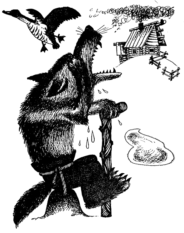 Волк подумал: «Не ускачет гусь далеко на одной ноге». Сказал: