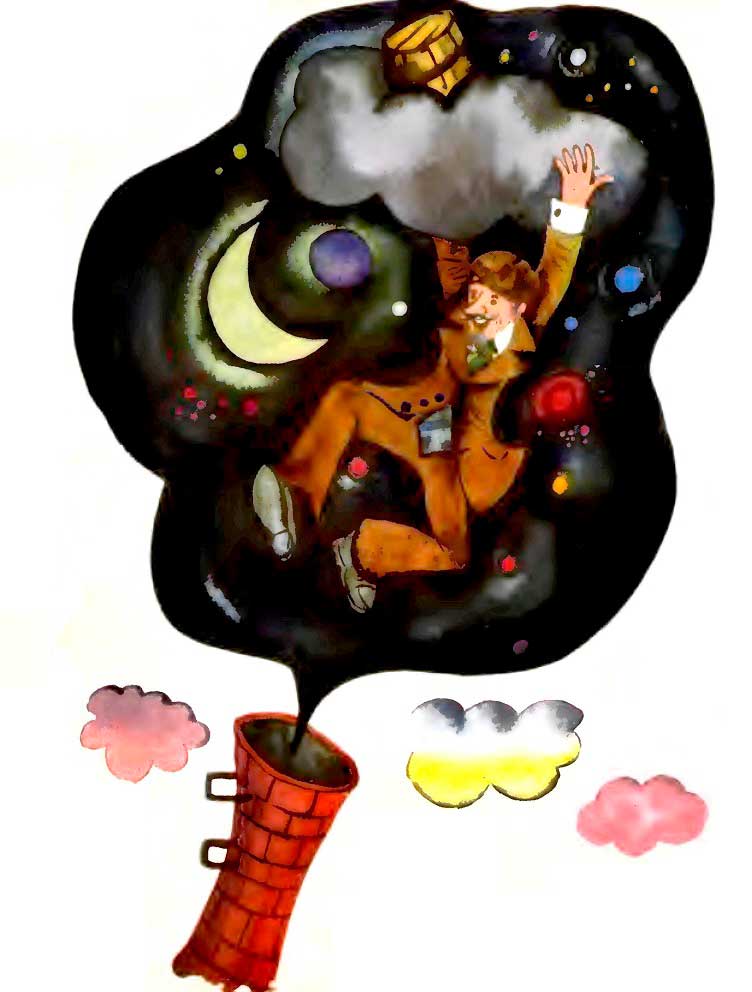 Десять пожарников надели рукавицы, прыгнули и поймали молниевый хвост. Вместе мы смотали её снова на кочергу. Десять пожарников сняли каски с медными гребешками и вытерли потные лбы.
