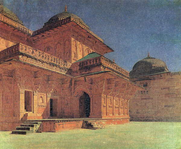 До середины XVII века Агра была одной из столиц державы Великих Моголов. Каждый из императоров старался украсить город величественными сооружениями во славу своей империи, не жалея на это ни средств, ни сил своих подданных. Стройные, изящные минареты, беломраморные дворцы и храмы, украшенные тонкой и ажурной, словно кружево, резьбой, изумляли и восхищали художника. Он проникся беспредельным уважением к народным умельцам, строителям, резчикам по камню.