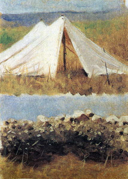 О своих мрачных впечатлениях художник писал жене и друзьям. Вот письмо к Е. К. Верещагиной от 19 сентября: «Не думай, пожалуйста, что мне весело здесь. Я просто не хочу пропустить то, что интересно и что, вероятно, в мою жизнь не придется больше увидеть. Уже начались дожди, от которых дороги сделались грязны. Достать корм лошадям очень трудно, а у меня их целых пять штук. К тому же так холодно, что в палатках жить трудно, постоянно с насморком и простудой…