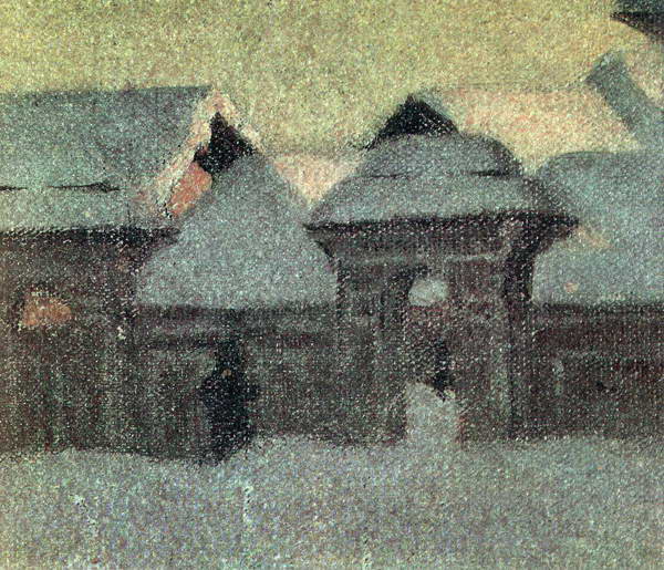 И вот новая поездка, охватывающая часть 1887 – начало 1888 года. Известно, что Верещагин с женой посетили Ростов, Ярославль, Кострому, Нижний Новгород, Юрьевец, Макарьев на Унже и, вероятно, другие пункты. Точную последовательность этого маршрута установить трудно. Пресса сообщает на этот счет разноречивые данные. В некоторых городах, например в Ростове, художник побывал дважды. Поэтому мы не будем придерживаться строгой хронологической последовательности путешествия. Концом января 1888 года датируется одно из писем художника из Ростова, где он писал этюды в зимних условиях. Видимо, вскоре после этого супруги возвратились из путешествия. Судя по датам на его письмах, в марте того же года Верещагин был уже в Париже, а в апреле открылась его очередная парижская выставка.
