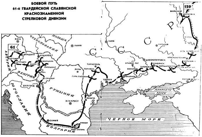 Знаменательно то, что 61-я гвардейская стрелковая дивизия с декабря 1942 г. входила в состав 3-й гвардейской армии, и поэтому весь ее боевой путь от Дона до Днепра совпадал с боевым путем 94-го отдельного батальона ПТР (в пределах армейской полосы наступления), а от Днепра я воевал уже в этой дивизии.