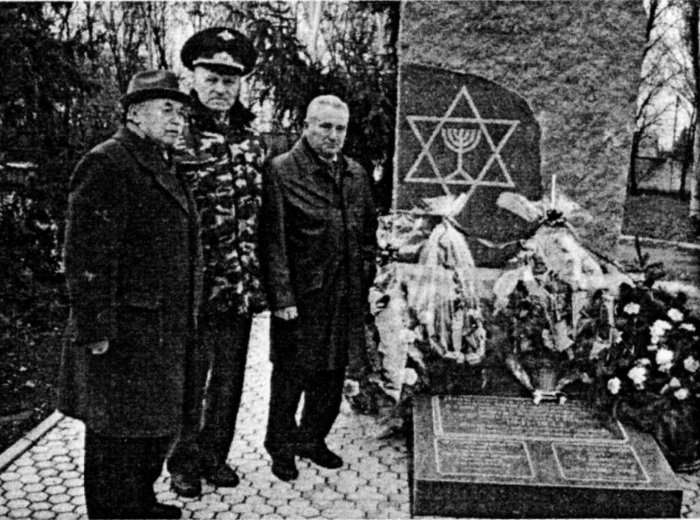 Город Никополь Днепропетровской области. Ветераны 3-й гвардейской армии у памятника жертвам Холокоста. Февраль 2004 г.