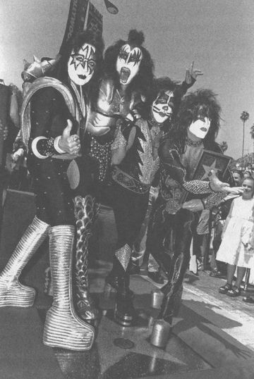 Группа «Кисс», игравшая три последних десятилетия XX века в жанре «шок» (разновидность хард-рока), обильно пользовалась макияжем и пиротехническими эффектами