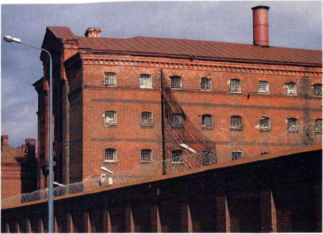 “Кресты” вблизи – корпус (“Крест”) с окнами и внешняя стена с колючей проволокой. Но железные жалюзи с окон сняты, а во время описываемых событий они были на месте.