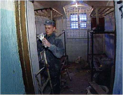 Ремонт камеры в более позднее время: шконки устроены уже не в два, а в три яруса.