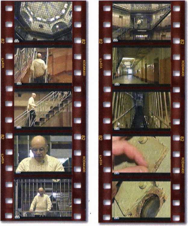 Кадры из документального кинофильма. НТВ специально, получив разрешение у начальства тюрьмы, привело автора в “Кресты”, поводило по лестницам, завело в пустую камеру (правда, без жалюзей на окне) и взяло интервью в ней. Это было два десятилетия спустя после событий.