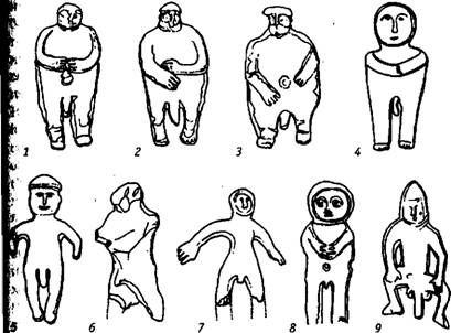 Рис. 31. Глиняные изваяния Германа из Болгарии, и их аналогии