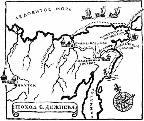 Не прошло и полустолетия после покорения Ермаком Сибирского царства, как русские, постепенно продвигаясь на восток от Оби, достигли Тихого океана: в 1639 году Иван Москвитин, с горстью казаков, основал поселение на берегу Охотского моря. Незадолго до этого был основан на Лене Якутск, и эта мощная река пройдена до самого устья. В 30-х годах того же XVII века были открыты Яна, Индигирка, а вскоре и Колыма, на которую пошли морем с устья реки Алазеи (она расположена между Индигиркой и Колымой). В этом походе на Колыму участвовал и казак Семен Иванович Дежнев, один из замечательнейших русских землепроходцев.
