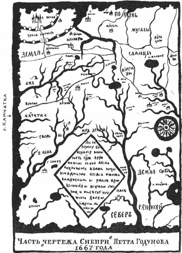 Во время знаменитого плавания Семена Дежнева Беринговым проливом, осенью 1648 года, бурей разметало его суда. Двое кочей (большие лодки), во главе с Федотом Алексеевичем Поповым занесло на Камчатку. Часть людей Попова, следуя к югу, достигла реки Камчатки, где ими было построено зимовье. От спутников Федота и могли попасть к русским на Анадырь те сведения о реке Камчатке, которые мы находим на чертеже 1667 года.