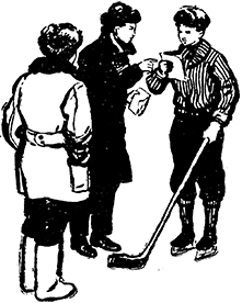 Я едва успел снять коньки, умоляя Женьку чуточку подождать. На поле все еще шла игра. Зачитавшись, я не заметил, что в ворота шестого «Б» наши игроки забили еще три шайбы. Но, правду сказать, дожидаться, как кончится игра, я не мог. Впрочем, и так было ясно, что мы не проиграем.