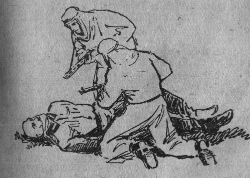 Я бежал рядом с Ольгой. Кажется, она меня не узнала в этой страшной огненной кутерьме. И вдруг она остановилась, словно наткнулась на что-то, выронила маузер, потом качнулась вперед, будто хотела его поднять, и упала в снег… И такой болью меня обожгло, словно не ей, а мне в тело вонзилась белогвардейская пуля. Но злость во мне закипела такая, что рванулся я вперед, ничего не разбирая. Только штыком колю, бью прикладом по вражеским плечам, по головам, по чему попадет…