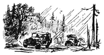 Машина, подпрыгивая на стыках щитов, катилась лесной просекой по узкой колее дощатого настила. По бокам мелькали, будто отлитые из бронзы, мощные стволы сосен. Впереди двигалась автоколонна с реактивными снарядами. Сзади наседали три тяжело нагруженных «ЗИСа». Машина генерала была зажата между ними и не имела возможности выскочить вперед даже на разъездах.