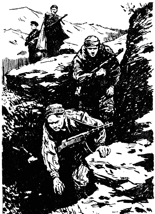 Четверо моряков сгибались под тяжестью оружия и грузов. У каждого на груди короткий черный автомат, на спине туго набитый рюкзак, на поясе гранаты и пистолеты. Кульбин нес за плечами большой чемодан радиоаппарата, в руках запасные аккумуляторы. Его рюкзак и автомат вскинул себе на плечи Агеев.