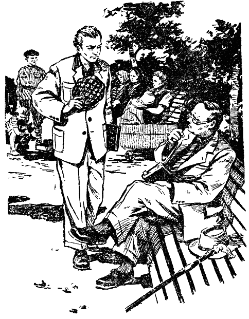 Прошло еще некоторое время. Высокий молодой человек лет тридцати, в сером костюме и серой кепке, с книгой в руке, неторопливо шел по аллее сквера, рассматривая сидевших на скамьях. Увидя свободное место, он направился к нему. Молодому человеку, видимо, тоже хотелось посидеть, отдохнуть, подышать свежим воздухом.