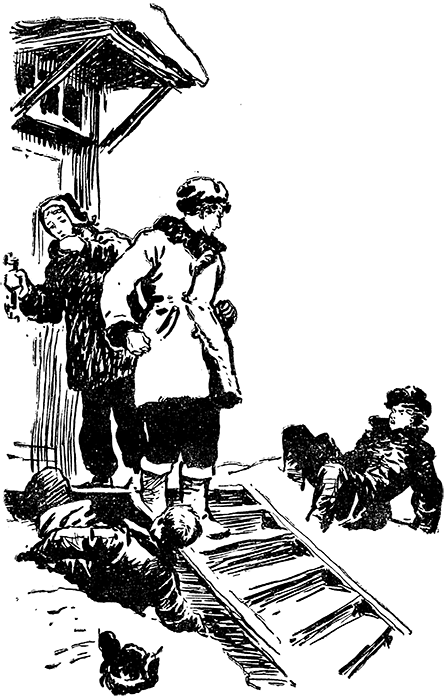 Внезапно я почувствовал такой крепкий толчок, что шапка слетела у меня с головы и сам я полетел с крыльца носом в снег. А когда, побарахтавшись, наконец, выбрался из сугроба и отфыркался, то увидел на крыльце высокого парня в полушубке и мохнатой шапке, сбитой на затылок. Женька, так же как и я, выбирался из сугроба, только с другой стороны крыльца. Парень глядел то на него, то на меня, хмуря светлые брови.