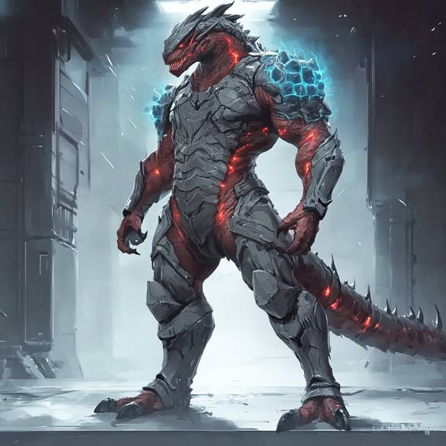 Вот окончательно только смешали все чувства фигуры, появившиеся буквально через пару минут, когда мы ещё толком не смогли осознать произошедшего. Ведь все мы были до такой степени ошарашены, что ещё не отправляли разведчиков в соседние помещения этого подземного комплекса или лучше сказать города, так и продолжая растеряно стоять под защитными куполами. Так вот, причиной нашего очередного ступора стали два десятка огромных, не меньше десяти локтей ростом, закованных в артефактные, отливающие энергетическими полями технодоспехи, высших ахортов С ранга сотого уровня. Для нас скорее похожих на бескрылых красных драконов, нежели на ящеров и это несмотря на то, что двигались они, как и мы, на двух ногах.