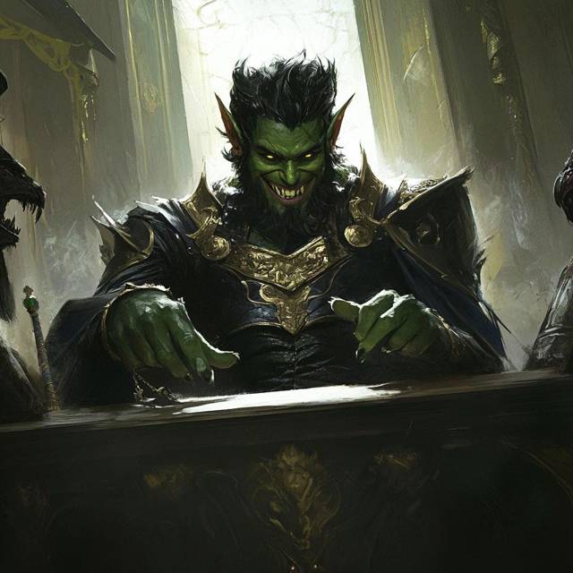 Иллюстрация. Глава семьи Пуртес, небольшого ума хобгоблин.