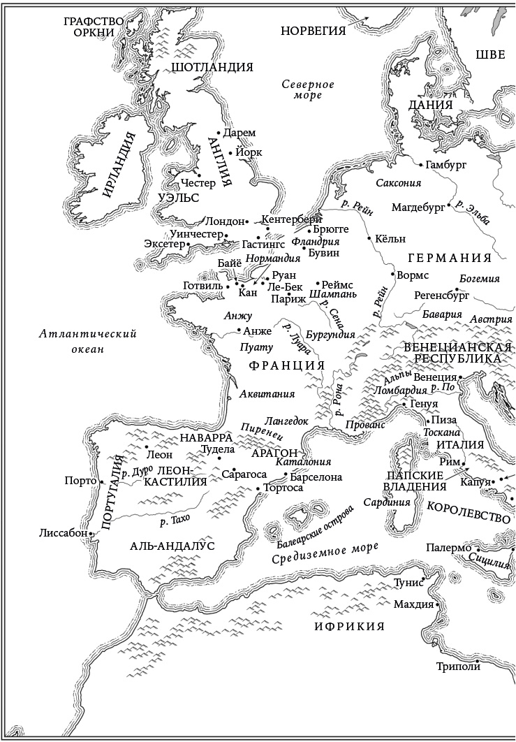 Фридрих был далеко не единственным нормандским монархом. Англия, бо́льшая часть Уэльса и значительная часть Ирландии (не говоря уже о нескольких важнейших территориях во Франции) находились под властью печально известного «плохого короля Иоанна», прямого потомка (по женской линии) великого нормандского завоевателя Вильгельма I. Севернее, в Шотландии, много лет правил король Вильгельм I Лев – на три четверти нормандец, поддерживаемый в основном нормандской аристократией. Да и в Средиземноморье Фридрих управлял Сицилией и Южной Италией, а почти половина Святой земли находилась в руках Боэмунда IV, князя Антиохии, праправнука небезызвестного итало-нормандского наемника Боэмунда Тарентского.