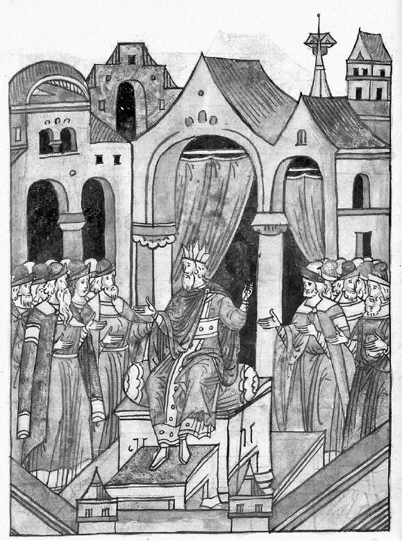 Лицевой летописный свод. Хан Узбек перед своими подданными. XVI век