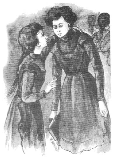 Звонок только что возвестил окончание урока. В классе обычная суета. Пока длится перерыв, здесь открываются форточки, а гимназистки в это время прогуливаются в зале и в коридоре. У крана или, вернее, у фильтра с кипяченой водой стоит Неточка, прибежавшая сюда гораздо раньше Зои, и ждет подругу.