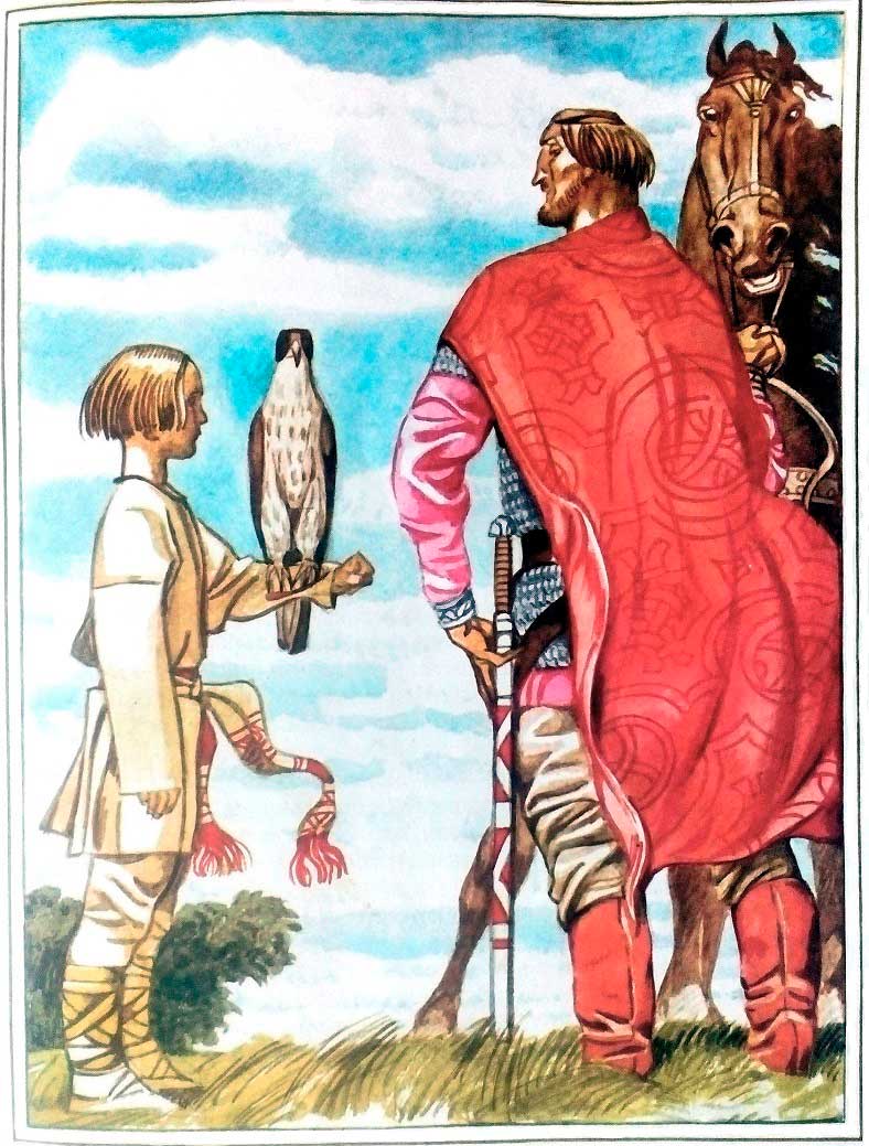 Приручить вольную птицу было нелегко. А поймать и того трудней. Ловцы уходили за соколиными птенцами в долгие скитания на север: хищные птицы селятся далеко друг от друга. Сокола надо было выследить, подкрасться в его отсутствие к гнезду, схватить птенца. Да ещё довезти соколёнка живым до Киева!