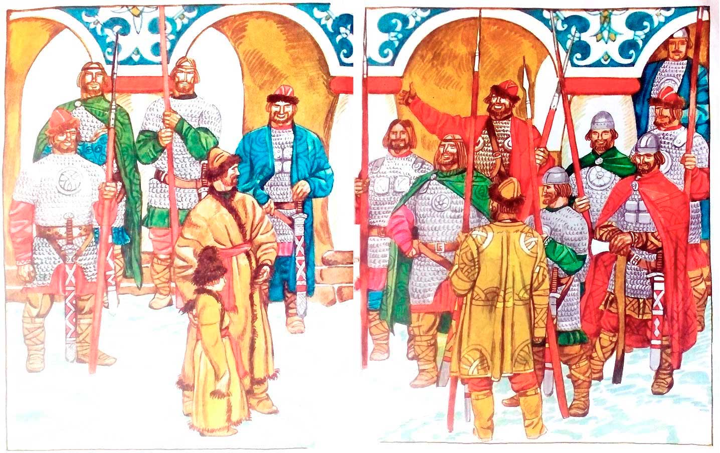 Варяг Бычья нога узнал мальчика, подвёл его к князю.