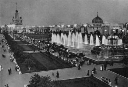 Фото 62. В. Ковригин. ВДНХ. Площадь колхозов вечером