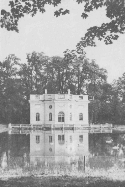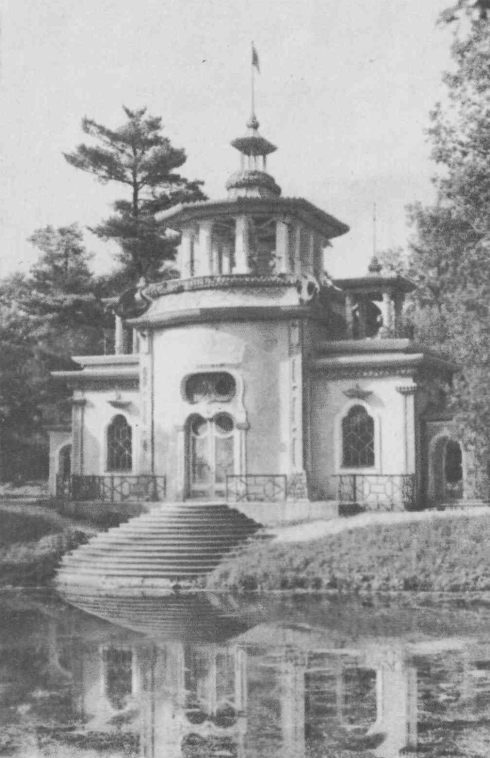 В 50-е годы XVIII века это был нарядный парковый павильон, созданный по проекту архитектора В. В. Растрелли. Обычно, когда на пруду катались на лодках, в павильоне играл оркестр роговых инструментов.
