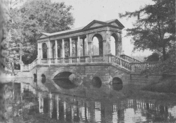 Строгая колоннада моста как бы замыкает собой перспективу Большого пруда у его юго-западной границы. Мраморный мост – одно из лучших украшений