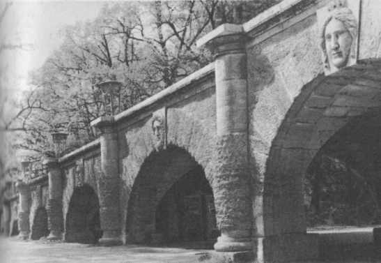 Из галереи посетители выходят в так называемый Висячий сад. На площадке, поддерживаемой каменными столбами, сделан свинцовый настил, а поверх него насыпан слой земли, достаточный для произрастания кустарников и даже деревьев.