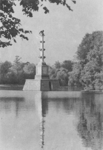 Посреди Большого пруда, как бы вырастая из воды, гордо возвышается Чесменская колонна – величественный памятник русской военной славы. Это один из памятников, посвященных победам в русско-турецкой войне 1768 – 1774 годов. В нем воплощена идея морского могущества России.