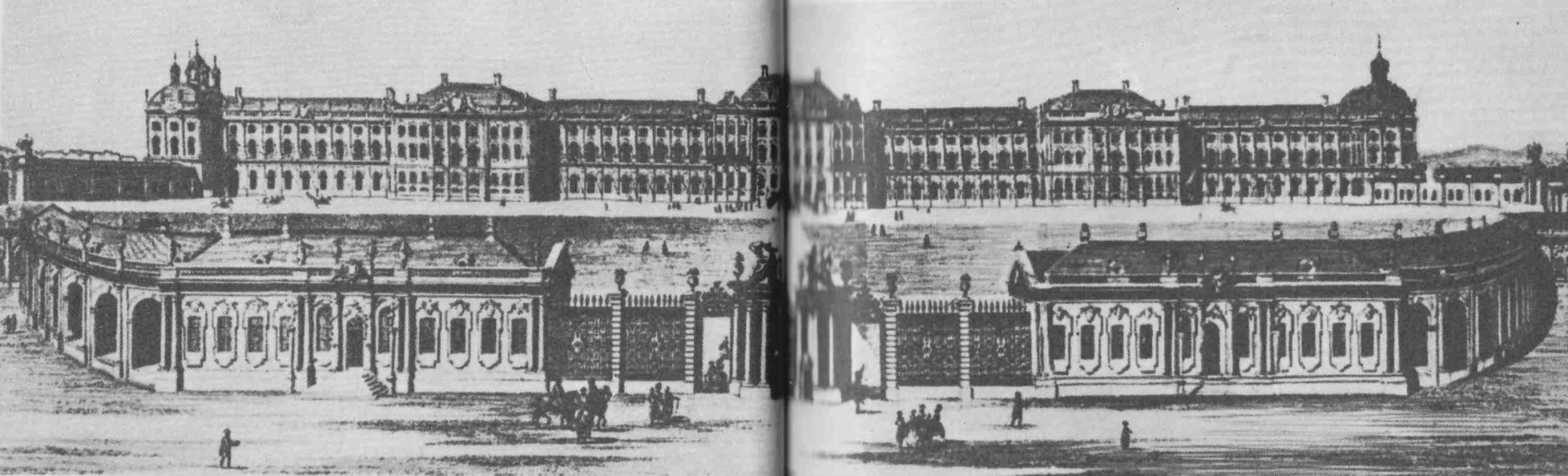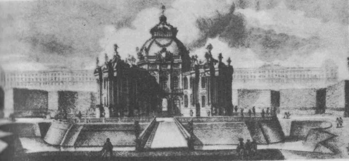 Царскосельский дворец в середине XVIII века. С гравюры Нике по рисунку художника М. И. Махаева.