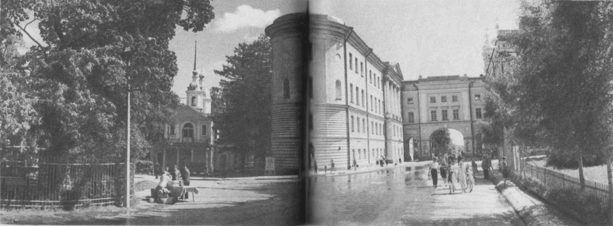 Отсюда сквозь деревья видны светлые фасады Вечернего зала.