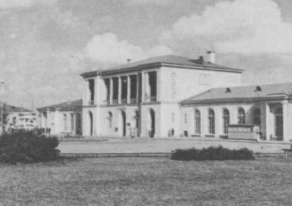 Здание выдержано в классическом стиле. Оно скромно и по своим размерам и по архитектурному оформлению. Фасад украшен четырьмя ионическими колоннами, расположенными по сторонам входных дверей, и высеченными из камня женскими фигурами.