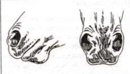 Глаза высоко посажены на голове.