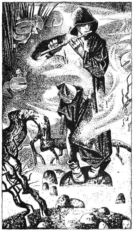 Флейтист стоял в воде неподалеку от берега маленького озерца. Полосы тумана обволакивали его колени и протягивали свои мглистые туманные пальцы, поглаживавшие, словно лаская, складки его серого плаща. Звуки лились, смешиваясь с потоками тумана, они нашептывали мне что-то, они вызывали у меня слезы, ведь их рассказы были так печальны! Я так и не поняла, что это было, а в памяти осталось одно: все это безумно грустно. Дужка ведерка с овсом скользнула у меня меж пальцев, и я уселась на землю, совсем мокрую, уселась так, словно в ногах у меня не осталось сил.