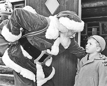 Но жена Валентина поддержала мою замечательную идею – она ждала ребёнка и при случае репетировала роль матери, а здесь такая затея! С моей подачи она сходила в магазин, купила краски, добавила к ним печенье, конфеты, всё уложила в пакет и обвязала красивой лентой. Затем намазала мой нос и щёки помадой, приклеила мне бороду и усы из ваты, накинула на меня простыню и сзади заколола её булавками; на голову я напялил красную кофту жены (сделал что-то вроде шапки), посмотрел на себя в зеркало и увидел вылитого Деда Мороза.