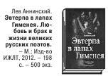 Эвтерпа в лапах Гименея. Любовь и брак в жизни великих русских поэтов. – М.: Изд-во ИЖЛТ, 2012. – 198 с. – 500 экз.